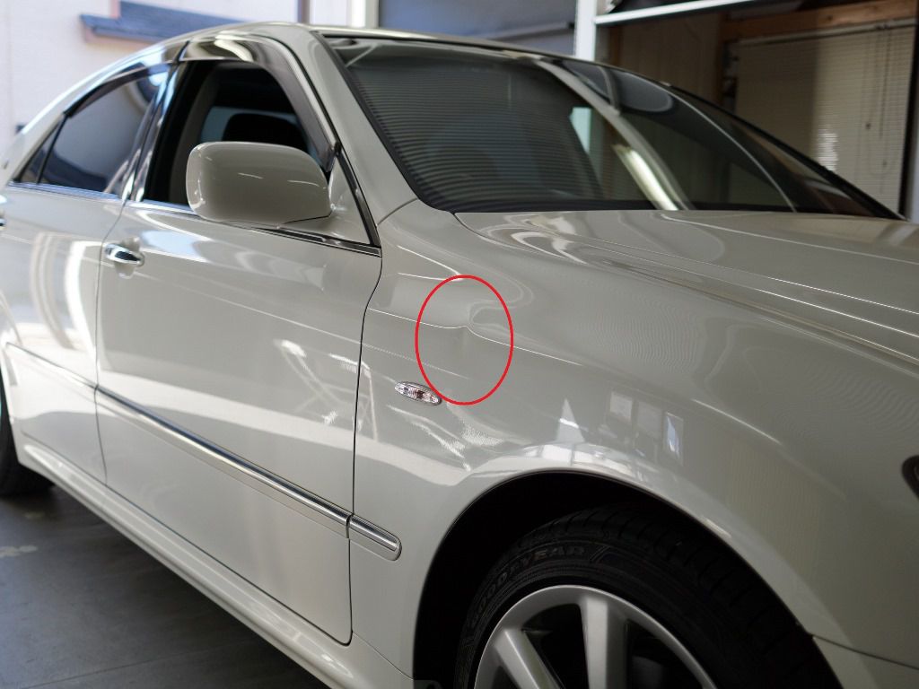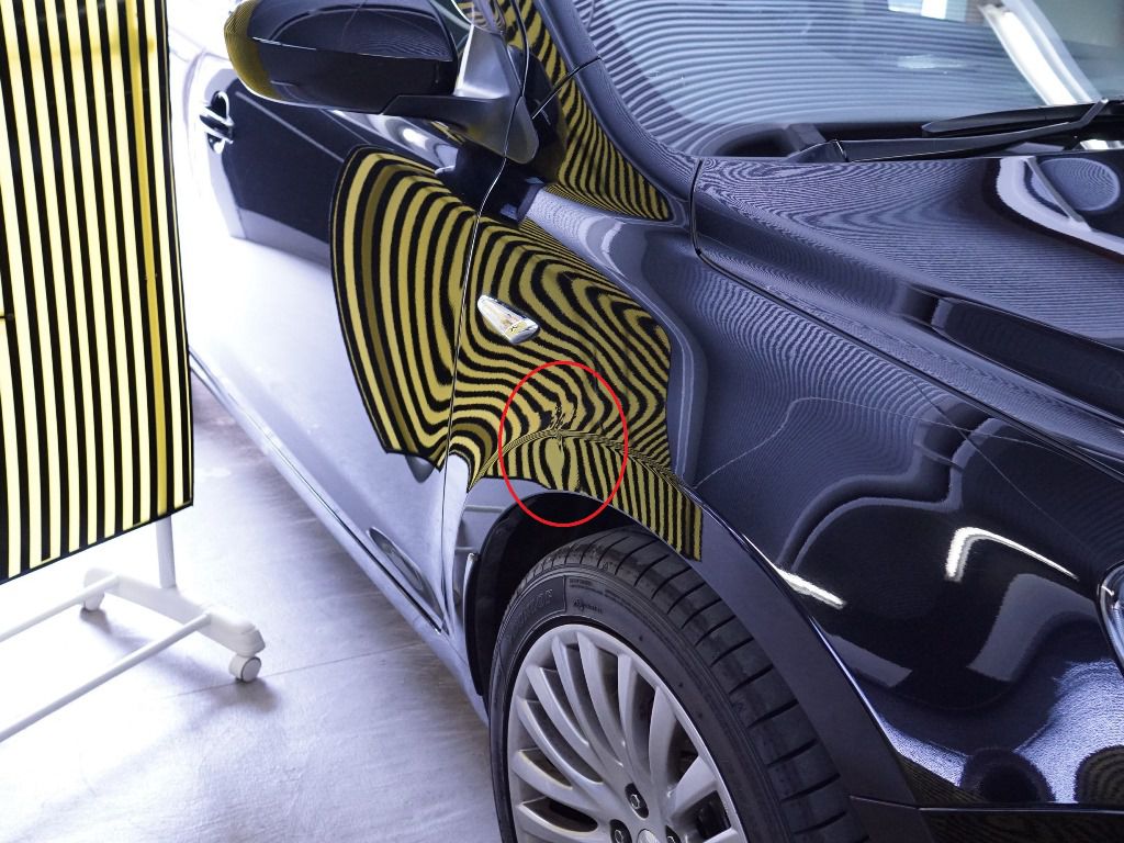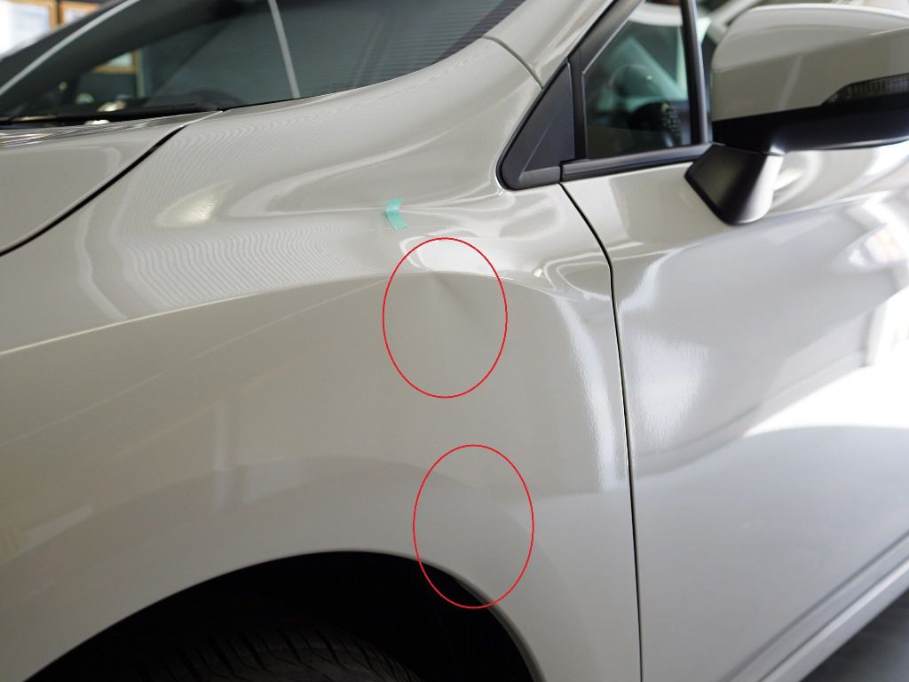 フロントフェンダーパネルののデントリペアの一覧です。当店ではラインボードの基準を映してよりキレイなへこみ修理をご提供しております。